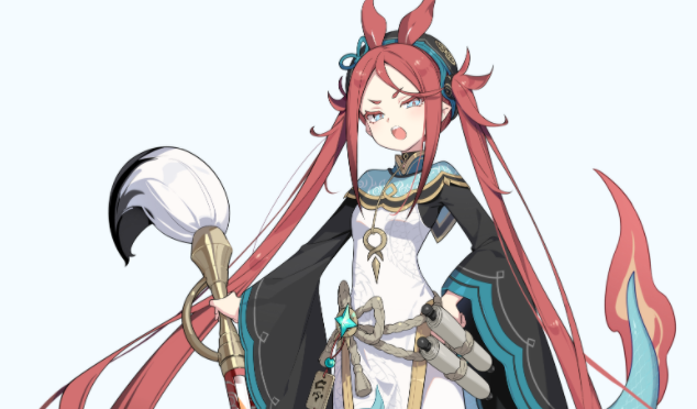 星塔旅人中赤霞明明身为玄师却意外的胆小,巨大的毛笔是改造过的喷火器,也是她绘制最强符纸的伙伴。