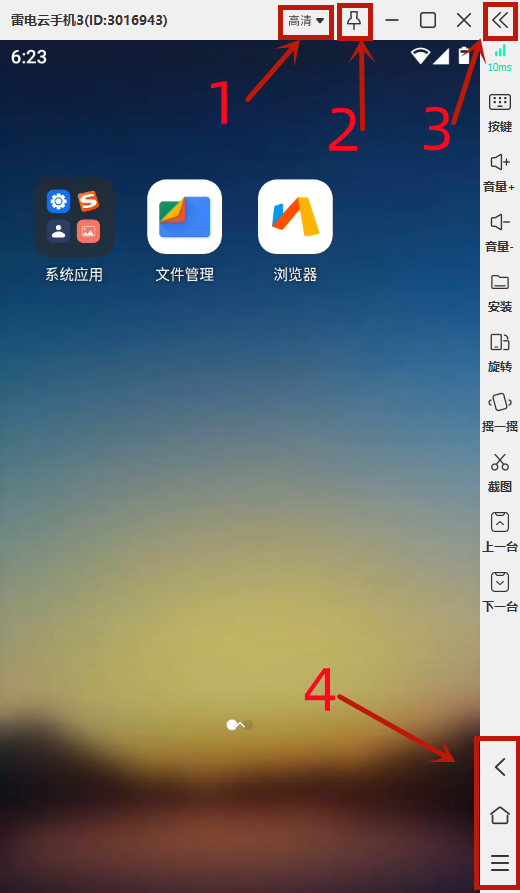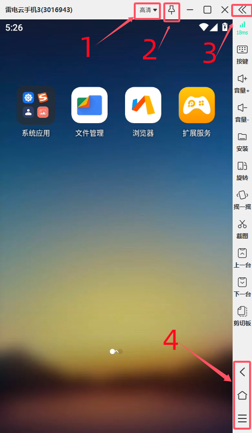雷电云手机电脑PC端新版设备操作界面使用说明(横版界面按功能图标对应即可)