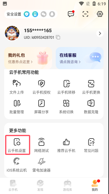 1、首先打开云手机找到我的-云手机设置。