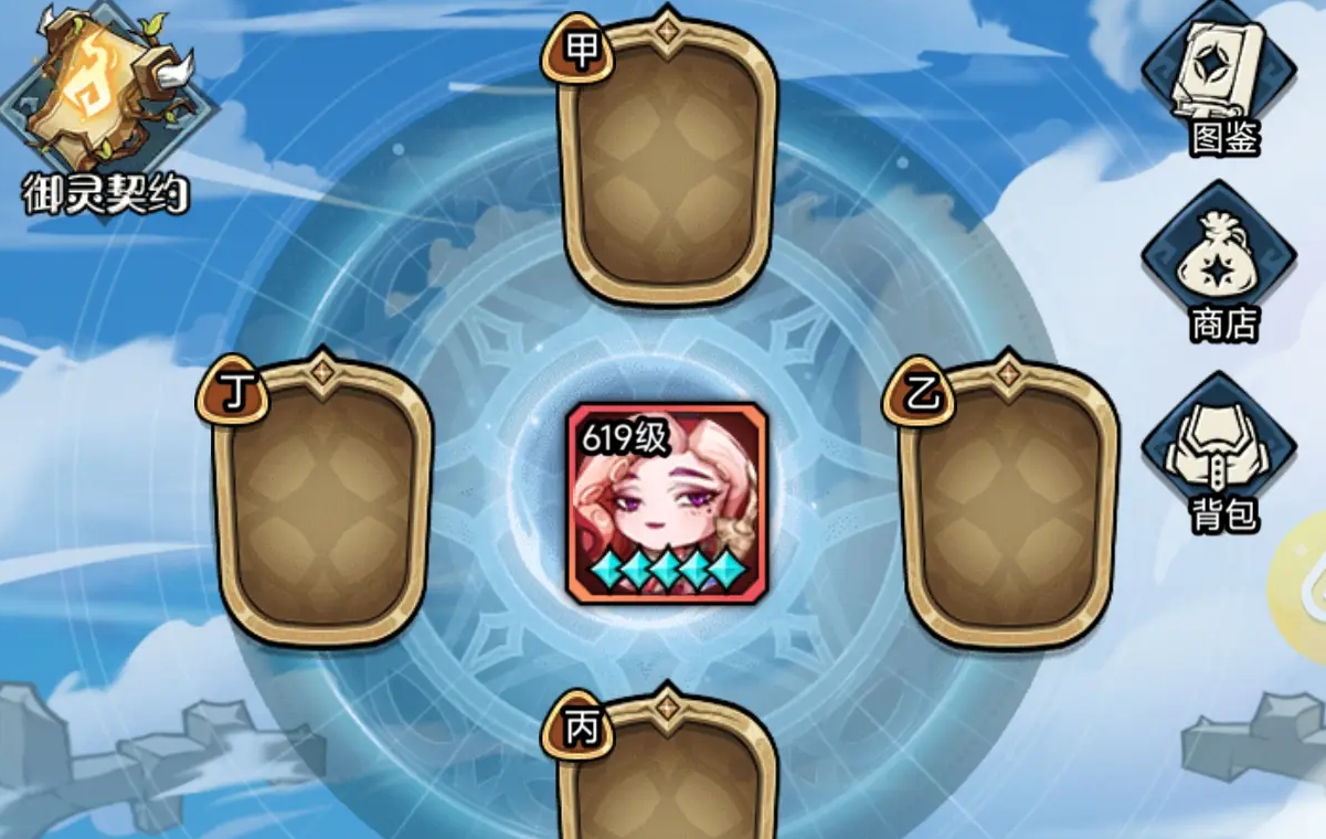 奥丘树海之下主角及三个森灵各有四个格子(甲乙丙丁),可以带四个御灵,四个为一套,两个森灵可以带同一套,两件套可以增加一些属性,但最重要的是四件套增加的一个专属技能,十分好用。