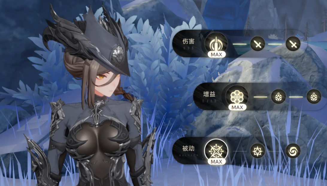 3、主要玩法:队伍必带“达芙涅”。前期可以玛尔洁/菲娜+主角,刷的快一些。先找敌人密集的位置站位,停射时先叠满 “预装填” 层数,再释放 “致命绽放” 技能给敌人挂 “裂伤” 标记。随后开启大招进入霸体炮台模式,借助大招的高攻速群体攻击快速清怪,期间不用按其他技能,大招射击即可自动触发裂伤结算,全程站桩输出即可,这也是最爽的地方,简单无脑,高伤害。