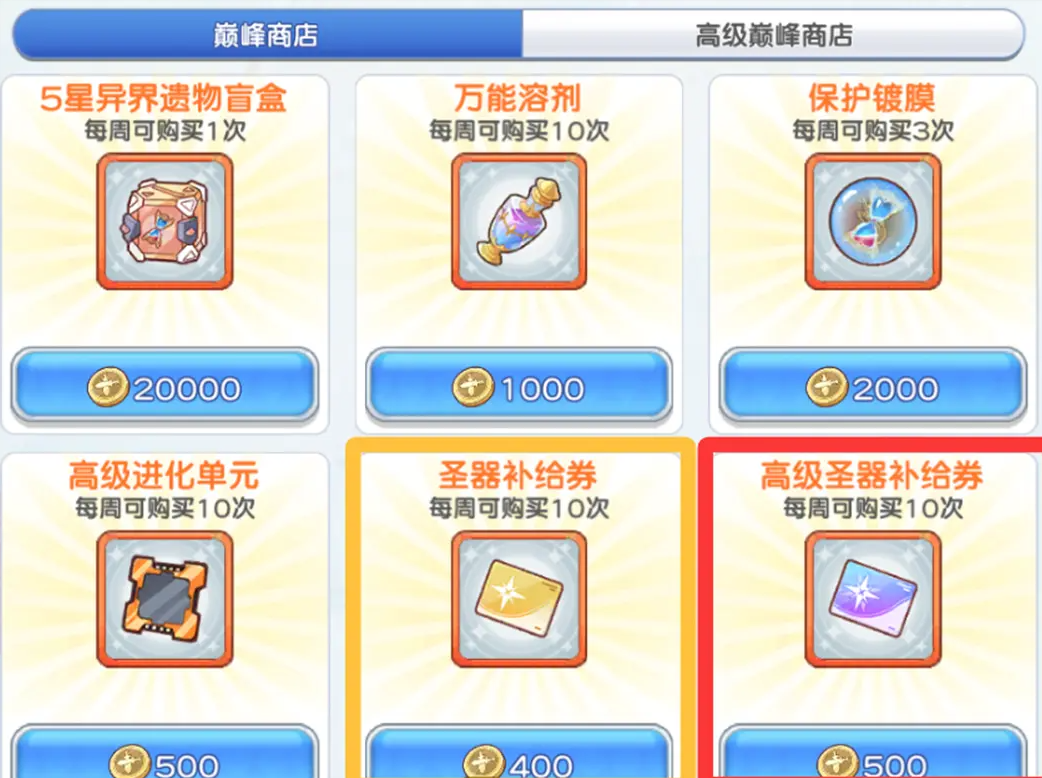 高级巅峰币如果全买圣器票还有溢出可以换圣器自选