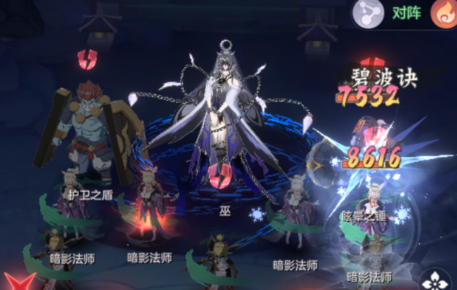 3、二阶段在普通巫的基础上又增加了2只怪物—影巫,其实就是boss的分身,可以可boss进行灵魂链接,击杀影巫boss也会扣血,同时影巫也会释放boss的绝技,击杀后可以回复66点愤怒值,并增加物理和法术伤害,可以参考英雄旱魃里面的2个蛋,打死了给己方增伤(从二阶段进入开始计算10回合后会进入暗影过载的狂暴状态,增加增加999%)。