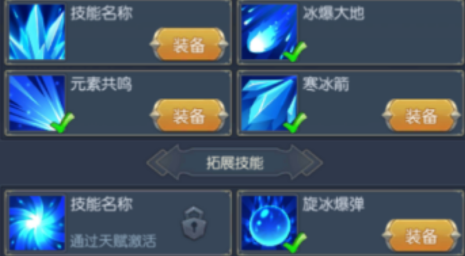 守护者大陆法师单人升级打副本可以用元素共鸣、冰爆大地、寒冰箭和旋冰爆弹这四个技能。团队副本中就要以伤害为主,并且配合天赋来做到最大输出,所以技能推荐用元素共鸣、冰爆大地、寒冰箭、暴风雪。